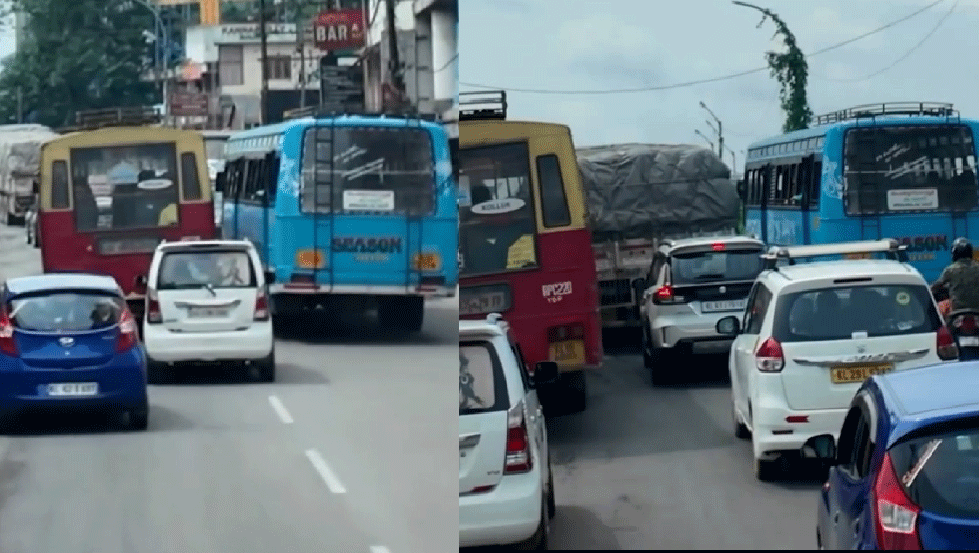 കാലടിയിലെ ഗതാഗതക്കുരുക്ക്. മോട്ടോർ വാഹന വകുപ്പ് സ്വകാര്യ ബസ്സുകൾക്കെതിരെ മാത്രം നടപടിയെടുക്കുന്നു: പ്രതിഷേധവുമായി ബസ്സുടമകൾ